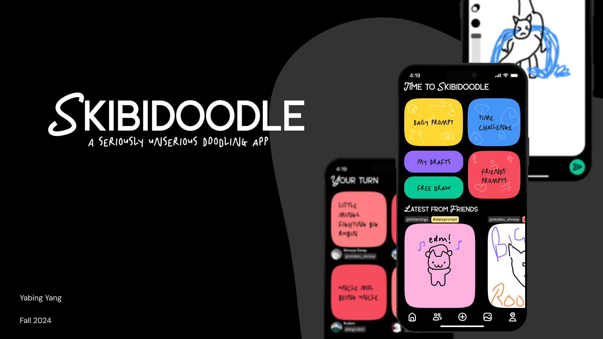 With Skibidoodle, the users have multiple options for doodling, whether its with friends or by themselves. The playfulness of the app encourages users to play around with their doodles as well, and helps users get in the habit of drawing without stress.