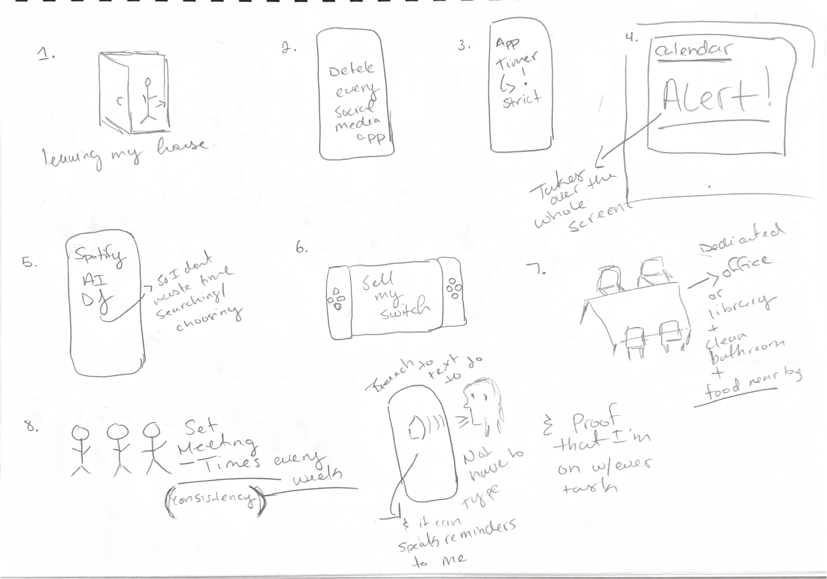 Co-design was a critical part of our process. After creating the site map, user flows, and low-fi prototype, we worked with one of our participants to review and critique them. They worked as a co-designer to help us better understand which features were distracting, confusing, or would otherwise not be helpful to users with ADHD. From this, we all worked together to sketch out and identify areas of improvement, new features, and flow improvements.